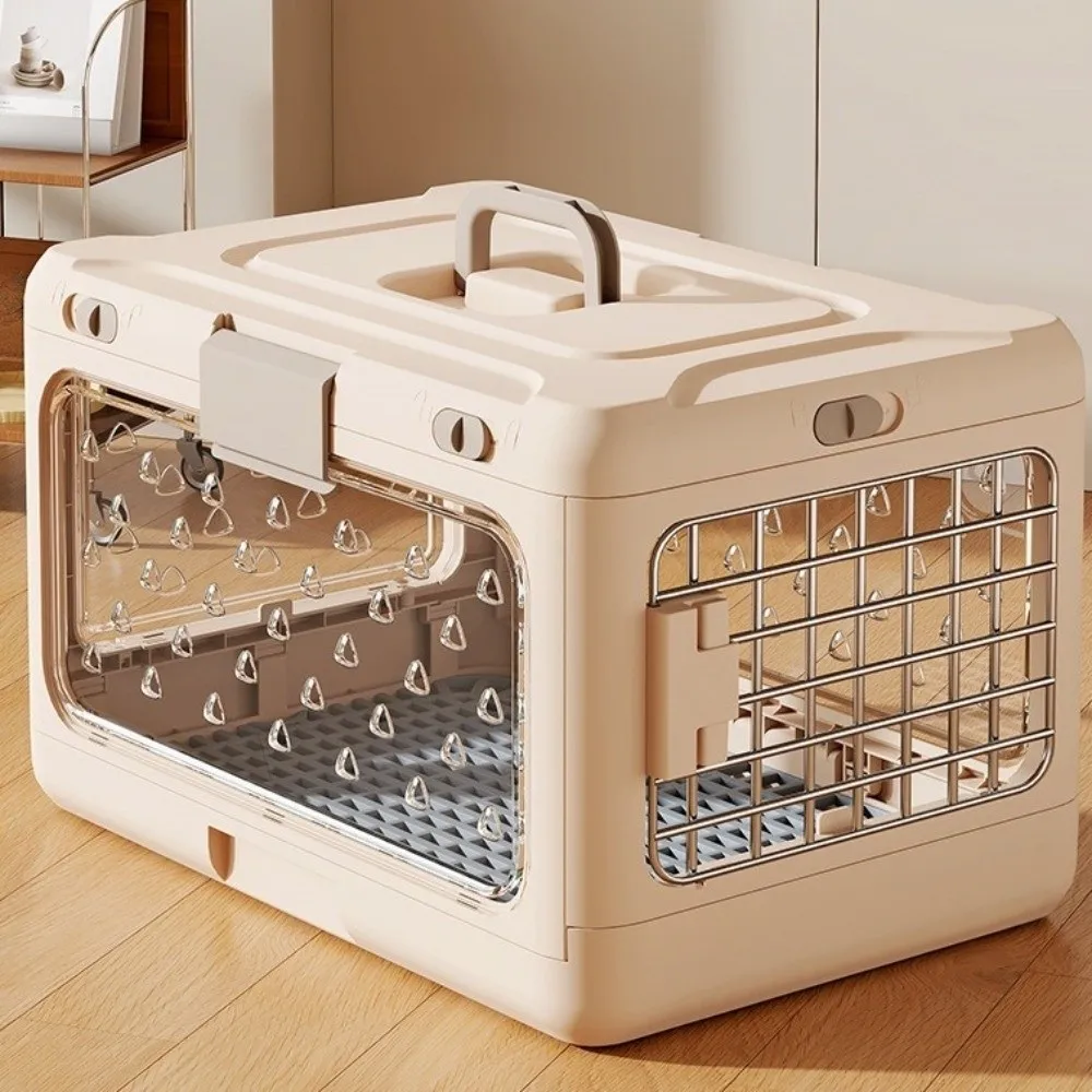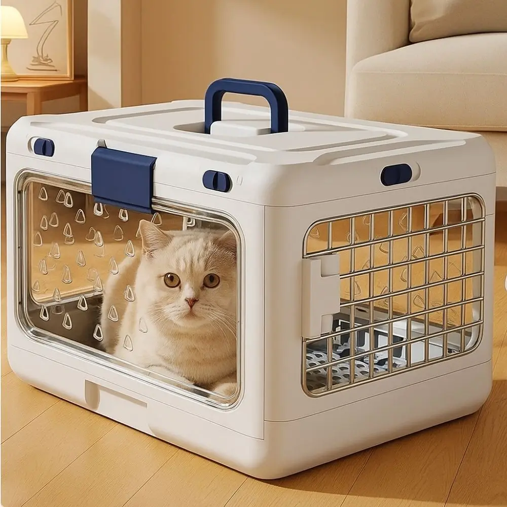 Trasportino salvaspazio in plastica resistente, ventilazione completa e porta trasparente per viaggi sicuri e confortevoli